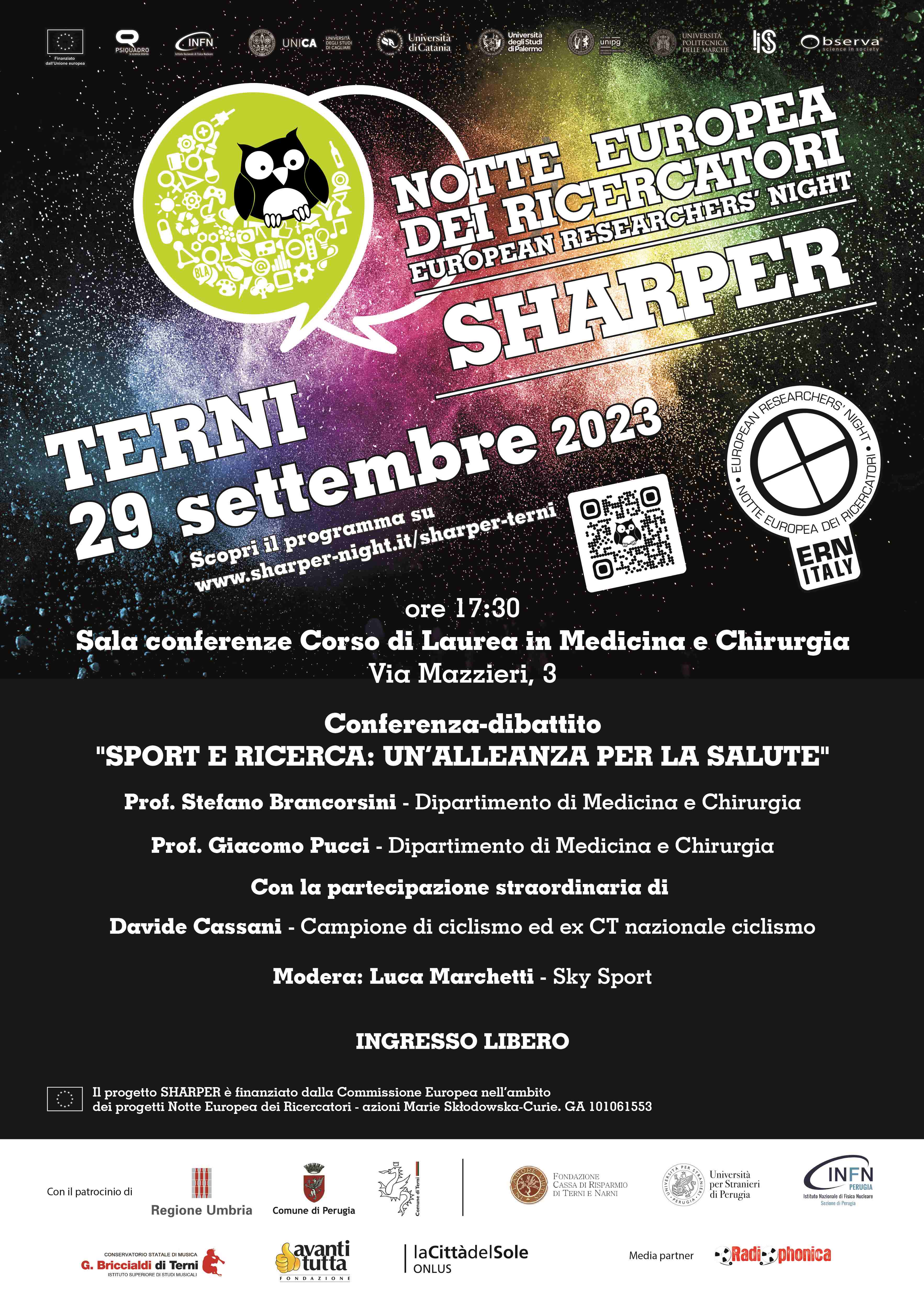 L'evento fa parte delle manifestazioni organizzate dall'Università degli Studi di Perugia - Polo Scientifico Didattico di Terni e rientra nell'ambito della Notte Europea dei Ricercatori - Sharper 2023, il cui programma è consultabile all'indirizzo