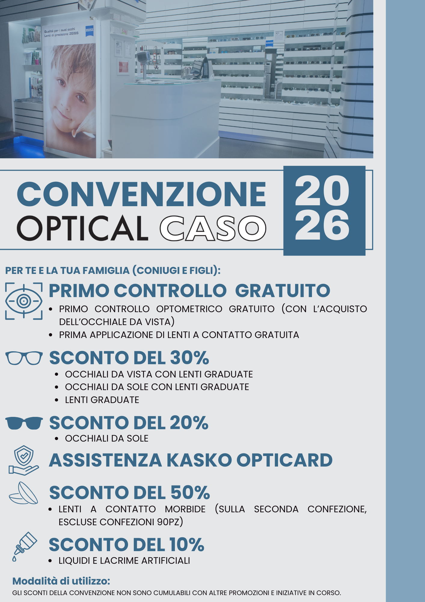 Il nostro Ordine ha stipulato una convenzione con Ottica Caso di Federico Virginia, con sede nel centro storico di Perugia alla via Oberdan 46, riservata ai nostri iscritti e familiari.